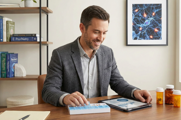Integrated psychiatric care stabilizing mood fluctuations, supporting medication management, enhancing insight, reducing relapse risk, and improving daily functioning stability outcomes.